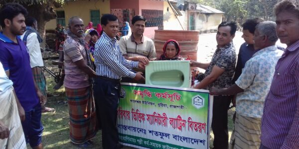 ১ম পর্যায়ে স্বাস্থ্যসম্মত পরিবেশ নিশ্চিত করতে অতি দরিদ্র পরিবারগুলোর জন্য স্যানিটারি ল্যাট্রিন নির্মাণ করা হয়েছে। বাগমারা উপজেলার গণিপুর ইউনিয়নে ৫০০টি পরিবারকে, পুঠিয়া উপজেলার বান্বেশর ইউনিয়নে ৪০০টি এবং মোহনপুর উপজেলার জাহানাবাদ ইউনিয়নে ৩০০টি পরিবারকে স্যানিটারি ল্যাট্রিন প্রদান করা হয়েছে, যার মধ্যে সিরামিক প্যান, গ্যাস পাইপ, লাইন পাইপ, সিমেন্টের রিং এবং ঢেউটিন সরবরাহ করা হয়। এই কার্যক্রম গ্রামীণ জনগোষ্ঠীর জীবনমান উন্নয়নে গুরুত্বপূর্ণ ভূমিকা পালন করছে।